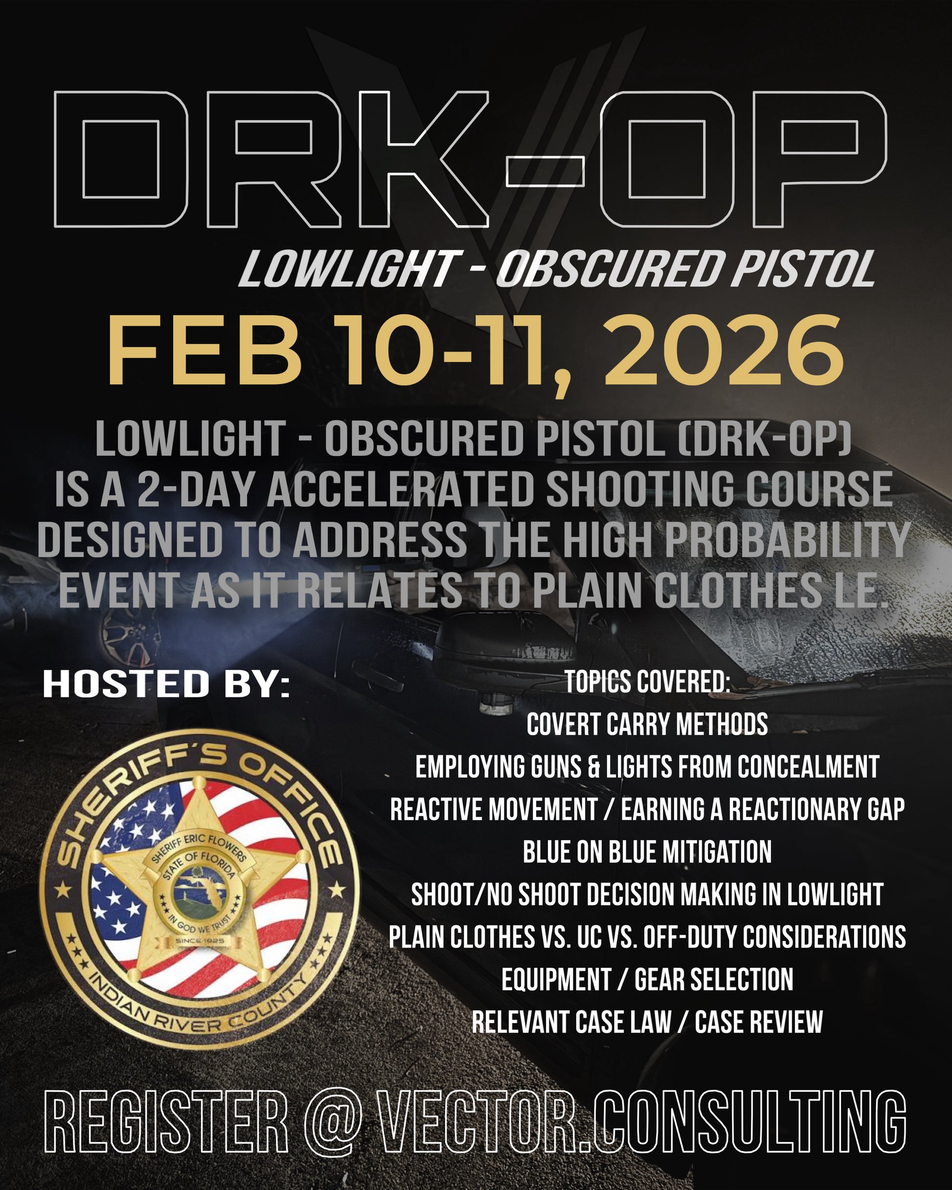 Lowlight Obscured Pistol (DRK-OP) is a 2-day accelerated shooting course that is designed to address the high probability event as it relates to plain-clothes law enforcement and/or off-duty carry. This course specifically focuses on the rapid transition from covert to overt, and the skills needed to survive and win a close proximity, high intensity, violent encounter.